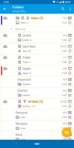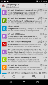 K-9 Mail è un altro client di posta open source per Android che permette di gestire facilmente grandi volumi di posta elettronica. Supporta i server Microsoft Exchange (2003/2007 con WebDAV). K-9 Mail ha tutte le funzionalità che ci si aspetta da un’applicazione di posta, come il supporto per più account, una funzione di ricerca, la sincronizzazione di più cartelle, tema scuro e crittografia OpenPGP.