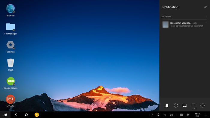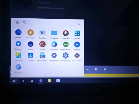 Come già detto, Remix OS punta a conquistare i desktop e, nonostante sia un Alpha, sono già state implementate molte funzioni che ho apprezzato parecchio. Android nasce per i dispositivi touchscreen, tuttavia questo S.O. ha abilitato il tasto destro del mouse. Sì, se ve lo state chiedendo, il touch funziona. A prima vista ricorda abbastanza una qualsiasi versione di Windows o KDE: barra in basso con una sorta di “app drawer” o “Start” dove vi sono tutte le app installate. Subito dopo le icone delle app in esecuzione o delle app pinnate e infine, a destra, l’area delle notifiche, dell’orologio e di qualche settaggio rapido.