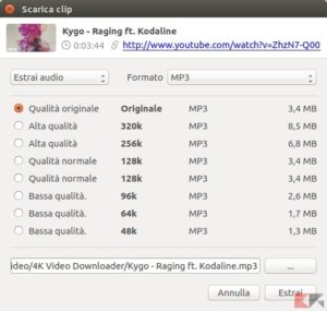 4K Video Downloader è un programma gratuito multi-piattaforma disponibile anche per Linux, scaricabile in tutta semplicità gli MP3 dai video musicali di YouTube.