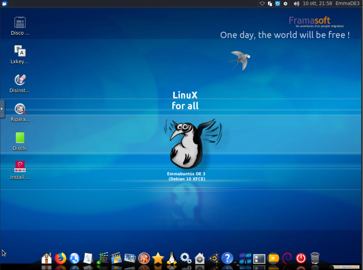 Emmabuntüs Emmabuntüs è una distribuzione desktop Linux basata su Debian. E’ dedicata ai novizi e richiede relativamente poche risorse così può essere usata sui vecchi computer. Include anche caratteristiche moderne, come molti programmi per l’uso quotidiano già configurati, installazione semplificata di software non free e codec multimediali. Versione DE3-1.00 Questa versione contiene (in Inglese): Based […]