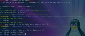 Se avete completato il login vi ritroverete in questa schermata, che mostra l’avviso per il comando ‘h’, la data e l’ora dell’accesso al server, informazioni su chi siete, il messaggio di benvenuto del server, le informazioni sulla directory corrente e il suo contenuto. Quello sarà sempre presente.