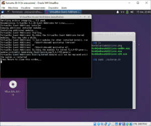 Installare la distribuzione ed aggiungere le VirtualBox Guest Additions