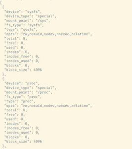 - Output in formato JSON ottenibile con l’istruzione duf –json;