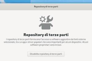 Durante il primo avvio mi viene chiesto se voglio abilitare i repository di terze parti, per includere alcuni driver e software proprietari non contenuti nei repository di Fedora.