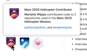 Come sapete su Ingenuity gira Linux. A confermarlo in un’intervista con l’Institute of Electrical and Electronics Engineers (IEEE) è stato l’ingegnere senior della NASA Tim Canham, che lavora per il Jet Propulsion Laboratory (JPL). Il volo di Ingenuity dunque è anche merito di circa 12.000 sviluppatori che hanno contribuito a scriverne il software e la relativa documentazione. Eppure, come per la prima immagine di un buco nero, la maggior parte di questi sviluppatori non è nemmeno consapevole di aver contribuito a rendere possibile il primo volo su Marte. Per questo motivo GitHub in collaborazione con il JPL della NASA ha deciso di premiare con un Badge ad hoc tutti gli sviluppatori coinvolti.