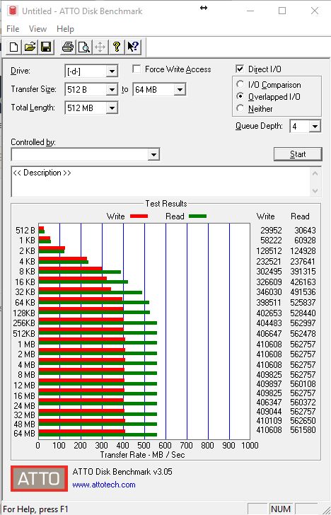 I valori in lettura sequenziale sono sempre stati compresi fra i 500 ed i 550 MB/s, così come quelli in scrittura, prossimi ai 400MB/s o poco sotto nella maggior parte dei test eseguiti.