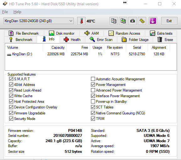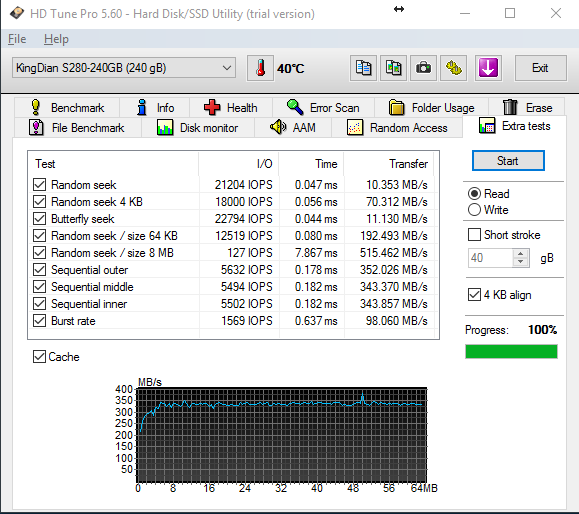 Passando alle specifiche tecniche, il KingDian S280 è in grado di arrivare a velocità in lettura sequenziali massime di 550 MB/s, ed in scrittura di 400 MB/s, due valori non altissimi ma allineati a tanti SSD entry-level dei brand più blasonati. Passando alle IOPS in 4K casuali, in lettura si aggirano sulle 85k, mentre in scrittura 70k.