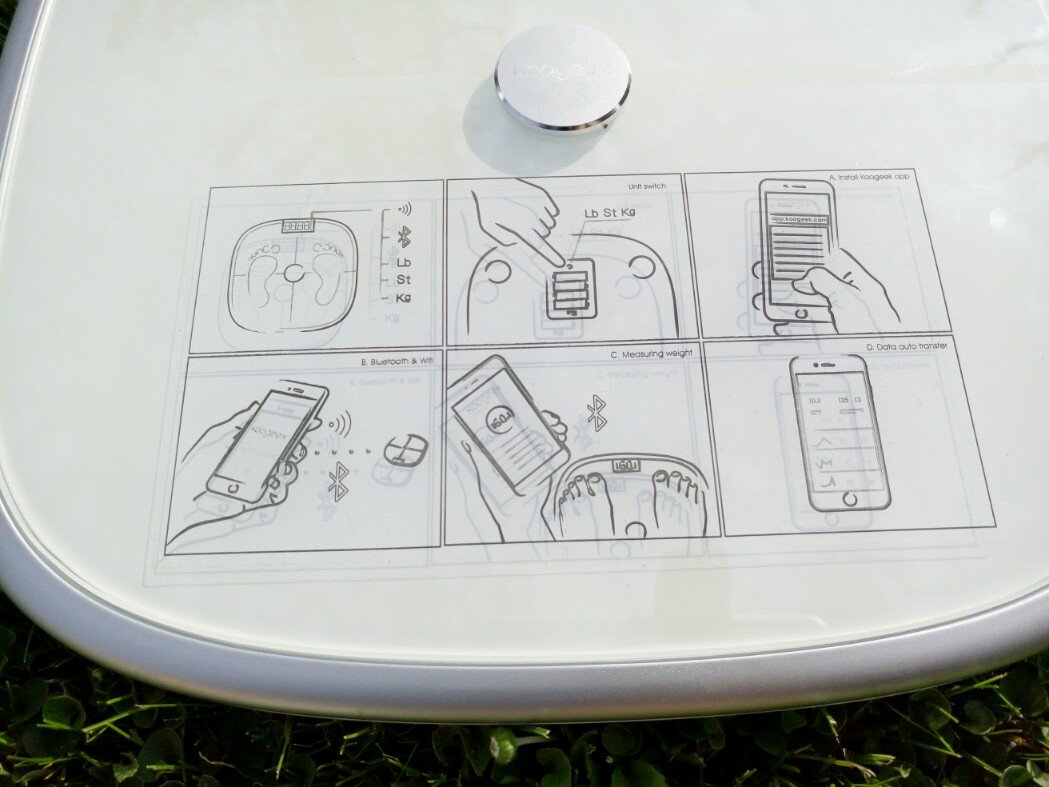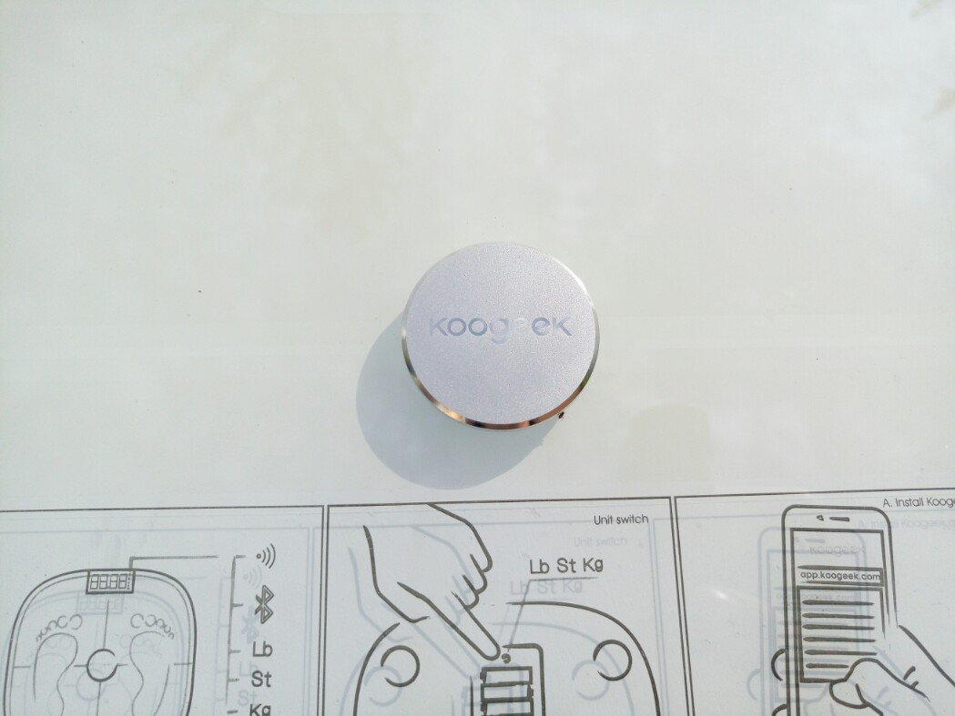 La forma del prodotto è quella tipica di qualsiasi bilancia e prevede, nella parte superiore, il piatto quadrato con angoli stondati e con al centro un perno metallico riportante il logo del produttore Koogeek. La parte superiore è realizzata in vetro semi-trasparente, mentre il profilo laterale è caratterizzato da un frame metallico di spessore ridotto.