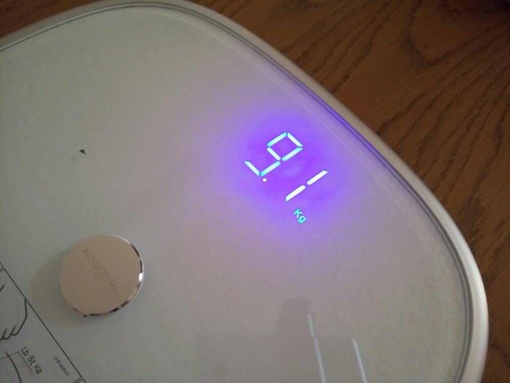 Il display a segmenti ha una retroilluminazione di colore blu, che mostra il peso rilevato e la connessione utilizzata, ovvero o WiFi o Bluetooth.