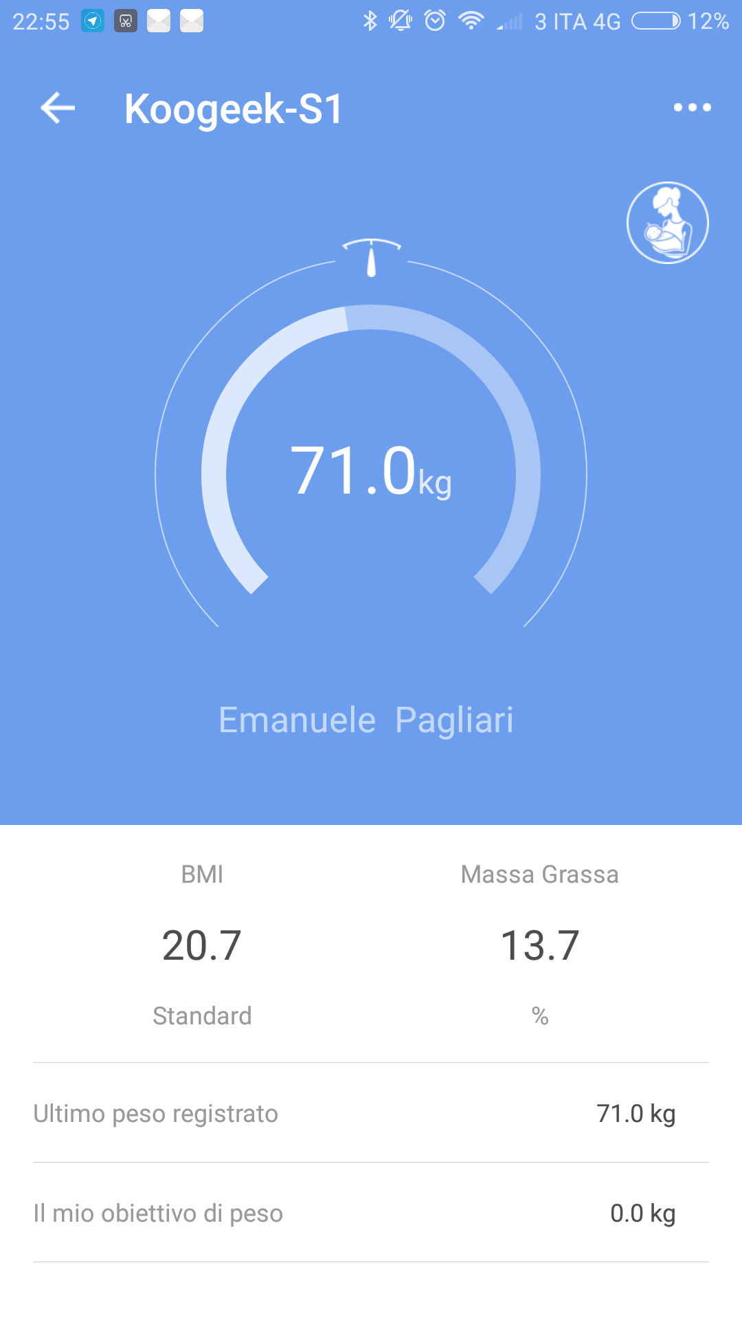 Tra le altre voci, troviamo anche la possibilità di impostare un nostro obiettivo, ovvero un peso da raggiungere o il numero di chilogrammi da perdere. Infine, ogni volta che vi peserete, i dati verranno automaticamente inviati allo smartphone tramite WiFi o Bluetooth, a seconda della vicinanza del vostro telefono dalla bilancia.