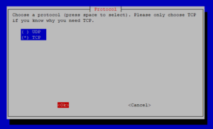 Quando ci chiede che protocollo vogliamo utilizzare dobbiamo selezionare “TCP” e non “UDP”