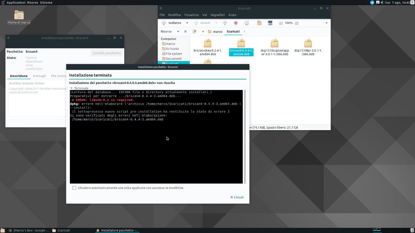 Mi manca lo scanner della mia Brother mfc1810 che non funziona, devo fare questo (come root)