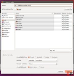 Ora selezioniamo File > Esporta > Solo audio… e selezioniamo il percorso in cui salvare il nostro brano tagliato. A questo punto saremo riusciti a tagliare MP3, tuttavia il file risultante sarà in formato M4a, che potremo comodamente convertire in MP3 utilizzando questo comodo convertitore online.