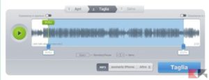Una volta scelta la parte di brano da tagliare facciamo click sul tasto Ritaglia (immagine in basso).
