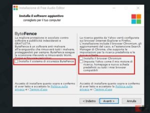 Facciamo click su “Clicca qui” sia a destra che a sinistra e togliamo tutti i segni di spunta che compariranno, come da immagine in basso, per evitare l’installazione di programmi potenzialmente indesiderati.