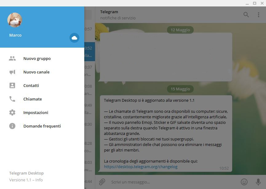 Ma vediamo il changelog completo di Telegram Desktop 1.1: